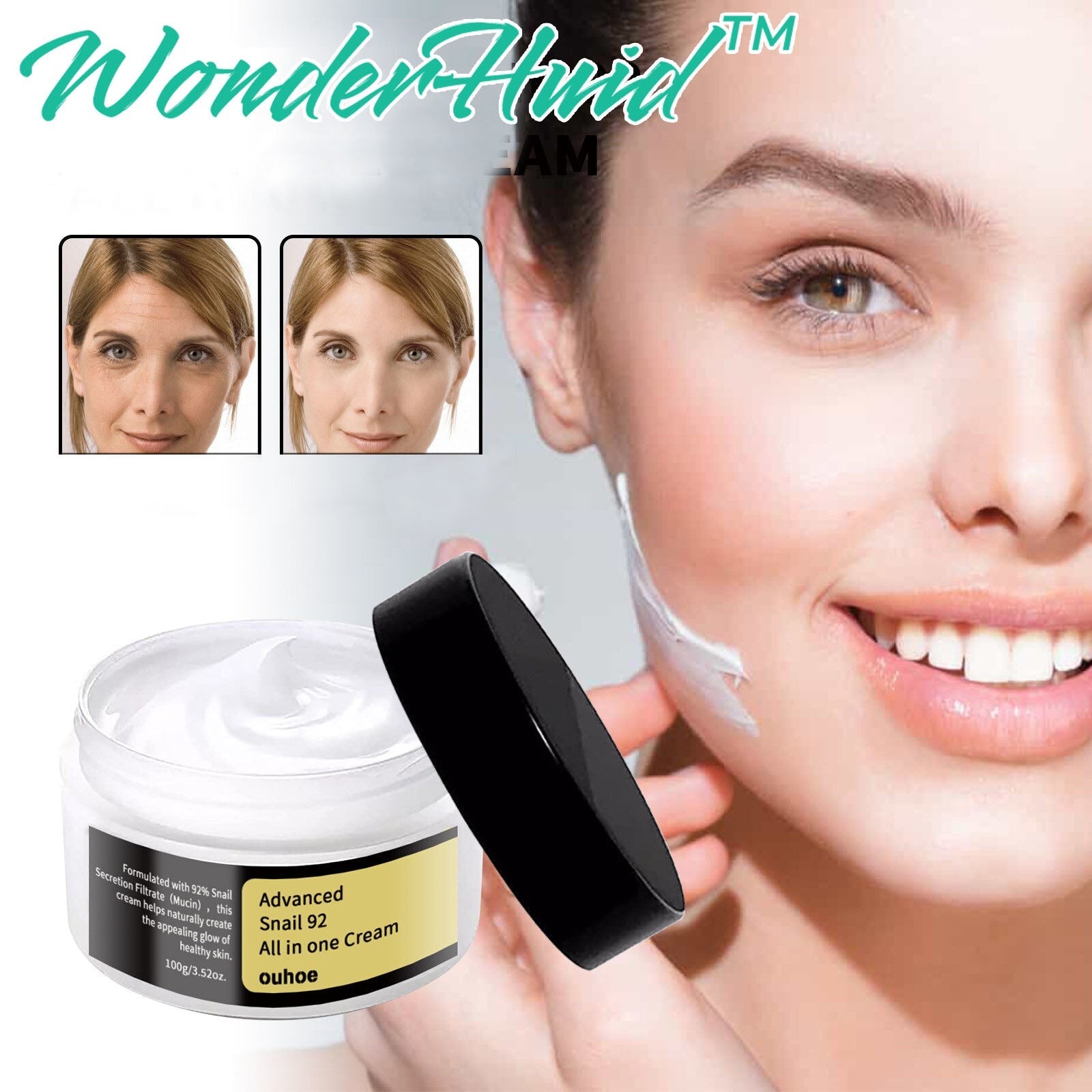 Ben je moe van verslapte huid en fijne lijntjes die je leeftijd verraden? Ontgrendel het jeugdige potentieel van je huid met WonderHuid™ Koreaanse Slak Collageen Crème! Benut de kracht van transformatie die je er 20x jonger uit laat zien in slechts een week!